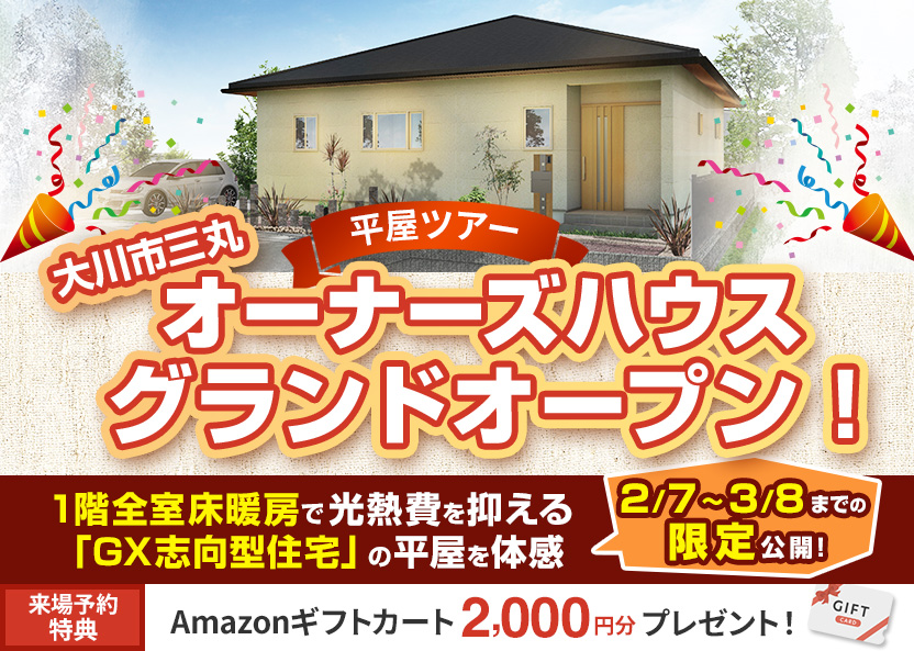| 開催場所 | 福岡県大川市三丸16-6 *新規分譲地のためナビでは出ません GoogleMAPを参考にご来場ください。 |